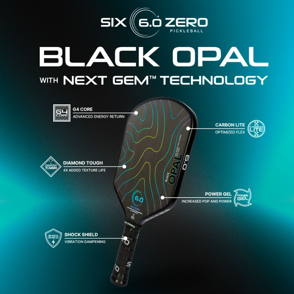 The Black Opal introduces Six Zero’s patent-pending Diamond Tough infusion across the entire face, extending surface texture life by more than four times compared to industry standards. This means spin, bite, and consistency that endures match after match.